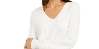 Suéter túnica de malha canelada feminino Alfani, tamanho pequeno, tamanho extragrande, branco