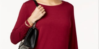 Camiseta feminina Alfani com gola redonda franzida, vermelha, tamanho médio