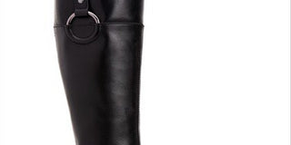 Botas femininas Alfani de cano alto, bico redondo, pretas, tamanho 7.0