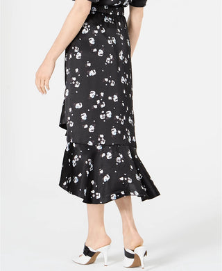 Saia midi com babados e estampa floral Alfani feminina, preta, tamanho 6