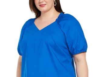Blusa camponesa com babados e decote em V Alfani feminina, azul, tamanho 2X