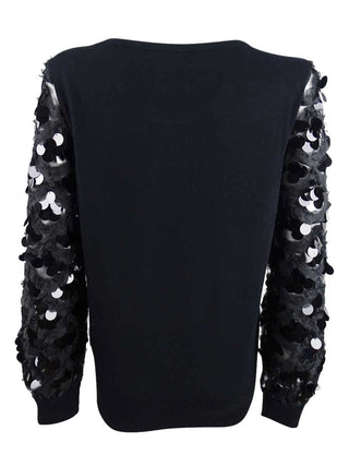 Suéter feminino Alfani com manga de lantejoulas, preto, tamanho pequeno