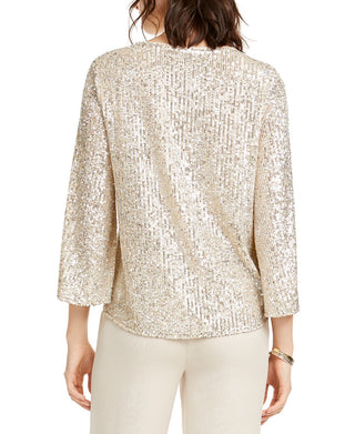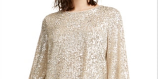 Blusa feminina Alfani com manga sino e lantejoulas, dourada, tamanho 2XL