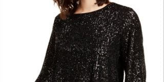 Blusa feminina Alfani com manga sino e lantejoulas, preta, tamanho pequeno P/M