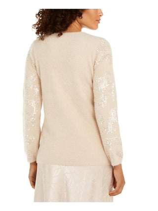 Suéter feminino Alfani com lantejoulas e gola redonda, marrom, tamanho médio