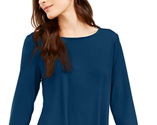 Blusa feminina Alfani lisa, azul-petróleo, tamanho pequeno G