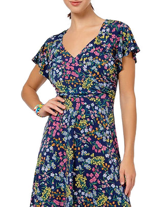 Vestido midi com estampa floral Zoe da Leota para mulheres, azul, tamanho 2X