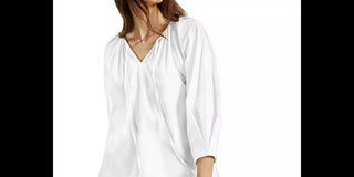 Blusa feminina Alfani com decote aberto e manga balão, branca, tamanho pequeno