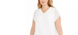 Blusa texturizada com decote dividido Alfani feminina, branca, tamanho 1X