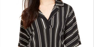 Blusa feminina Alfani listrada com gola entalhada e amarração frontal, preta, tamanho grande