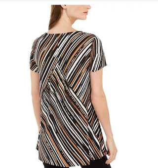 Blusa assimétrica listrada feminina Alfani, preta, tamanho X-S