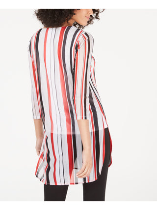 Alfani Túnica Feminina Listrada Manga 3/4 Gola Joia Vermelha Tamanho P