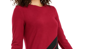 Camisa feminina Alfani listrada com blocos de cores, vermelha, tamanho médio