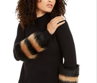 Suéter feminino Alfani listrado com punho de pele sintética, preto, tamanho pequeno