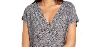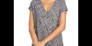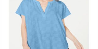 Blusa de noite feminina Alfani texturizada, manga curta, decote em V, azul, tamanho pequeno