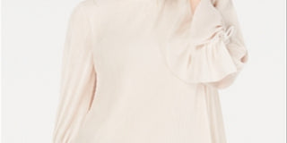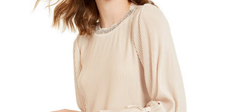 Blusa feminina Alfani com listras texturizadas e decote embelezado, tamanho pequeno, tamanho extragrande, bege