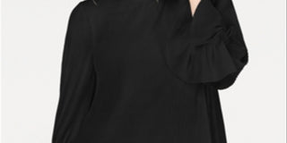 Blusa feminina Alfani com estampa texturizada e gola alta, manga 3/4, preta, tamanho grande