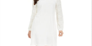 Vestido feminino Alfani com manga texturizada e decote em V, tamanho XX-G, branco