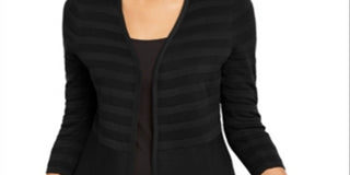 Cardigan feminino Alfani com listras texturizadas e frente aberta, preto, tamanho grande