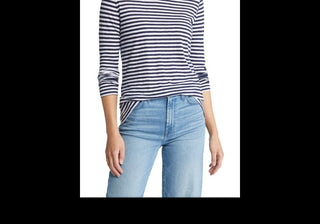 Camiseta feminina Caslon azul marinho e branca com listras Brooke e manga comprida, tamanho médio