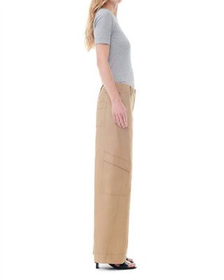 Ganni - Calça de cintura média em lona com padrão espinha de peixe