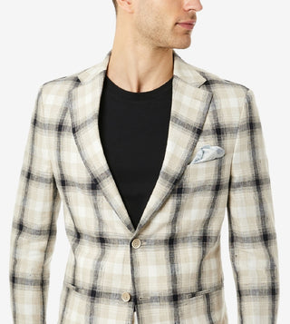 Blazer masculino Tallia Slim Fit em linho xadrez creme e preto, tamanho 44