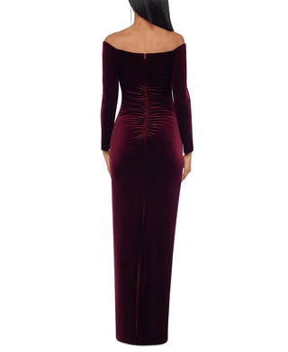 Vestido de noite feminino XSCAPE, manga comprida, ombro de fora, comprimento total, vermelho, tamanho 4
