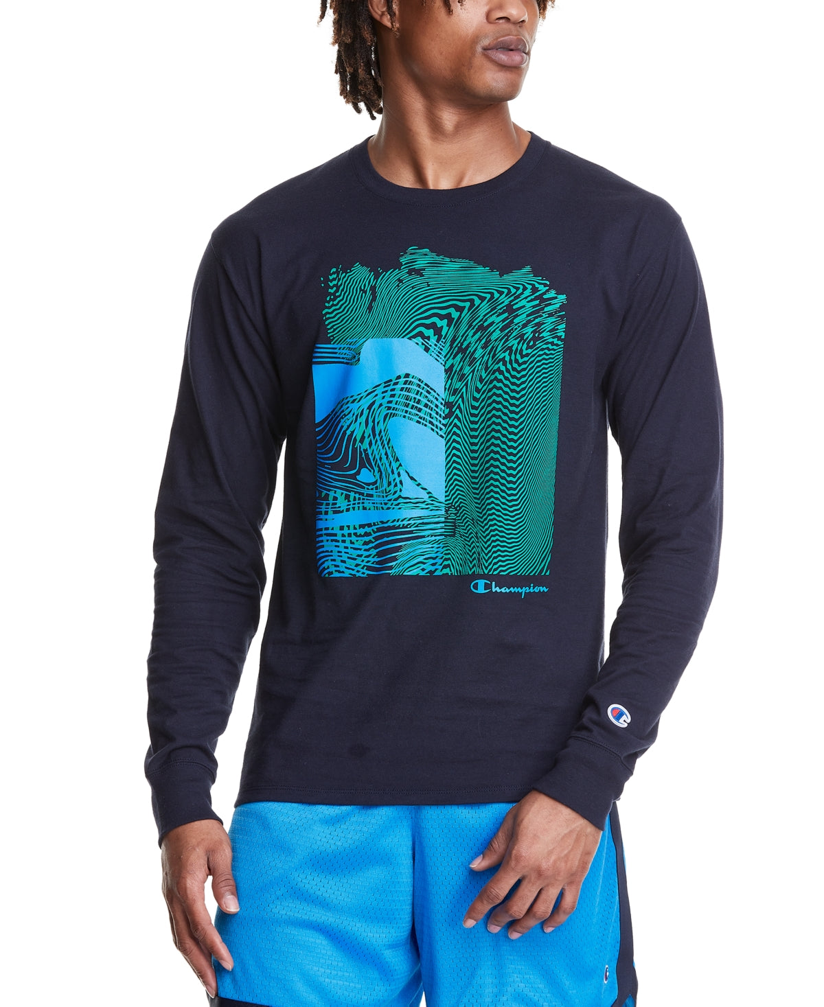 Camiseta masculina Champion com estampa abstrata azul, tamanho médio
