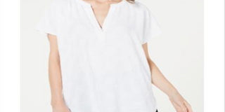 Blusa feminina Alfani texturizada com decote em V, branca, tamanho G