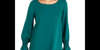 Blusa camponesa feminina Alfani com bainha em V, verde, tamanho XX-G