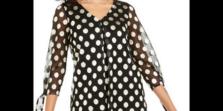 Blusa de malha com estampa de bolinhas e decote em V feminina Alfani, preta, tamanho G