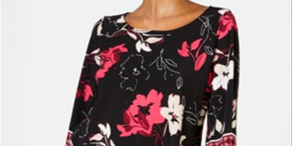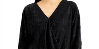 Blusa feminina Alfani com bainha em V e borda remendada, preta, tamanho pequeno G