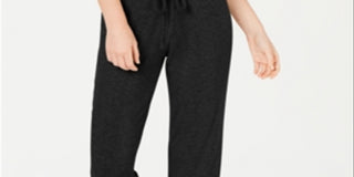 Calça de pijama feminina Alfani em malha canelada ultramacia, preta, tamanho X-S