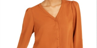 Blusa feminina Alfani com decote em V, marrom, tamanho médio