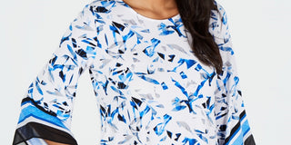 Blusa feminina Alfani com bainha em V e manga anjo, azul, tamanho PP