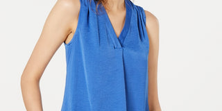 Blusa regata feminina Alfani com decote em V, azul, tamanho pequeno, médio