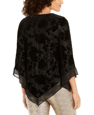 Blusa assimétrica Alfani feminina de veludo com manga sino e capuz, preta, tamanho XX-G