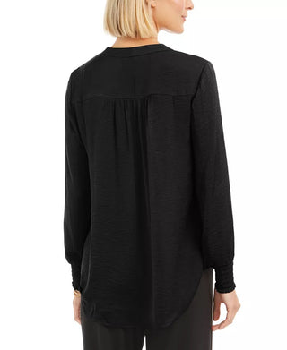 Blusa feminina Alfani com decote em V, preta, tamanho pequeno