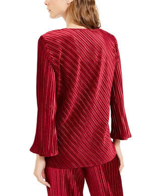 Blusa feminina Alfani de veludo canelado com decote em V, vinho, tamanho grande