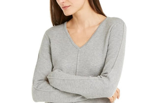 Suéter túnica feminino Alfani com decote em V, cinza, tamanho grande