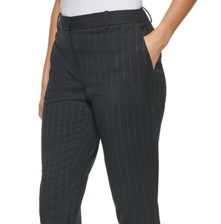 Calça listrada feminina DKNY cintura alta preta tamanho 8 Petite