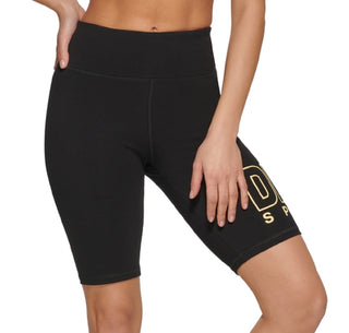 Shorts de ciclismo feminino DKNY de cintura alta, preto, tamanho médio