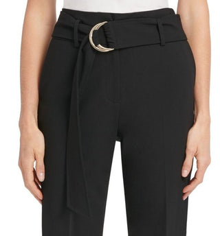 Calça social feminina DKNY cintura alta com cinto elástico, preta, tamanho 16