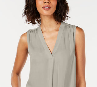 Blusa feminina Alfani de cetim com decote em V, túnica lisa, cinza, tamanho grande