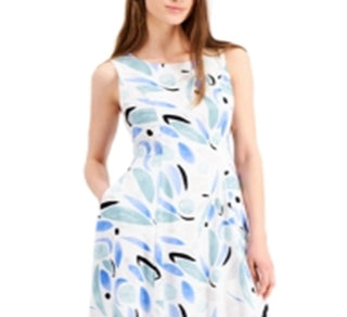 Vestido de festa feminino Alfani, sem mangas, com zíper e estampa, decote joia abaixo do joelho, ajuste evasê, azul, tamanho 14