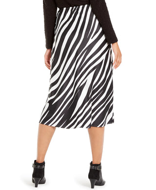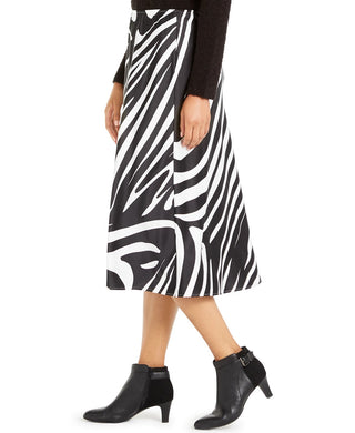 Saia midi evasê com estampa de zebra Alfani feminina, preta, tamanho 10