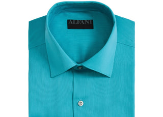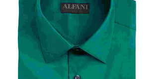 Camisa social masculina Alfatech By Alfani Slim-Fit Performance Stretch, fácil de cuidar, verde escuro, tamanho 32-33