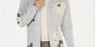 Cardigan feminino com estampa floral e frente aberta, cinza, tamanho pequeno P