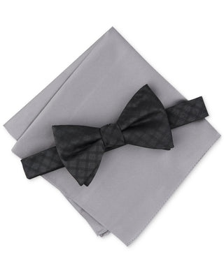 Gravata borboleta e lenço de bolso xadrez Gahln masculino Alfani, preto, tamanho único