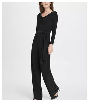 Macacão feminino DKNY com decote careca e cinto, preto, tamanho 8